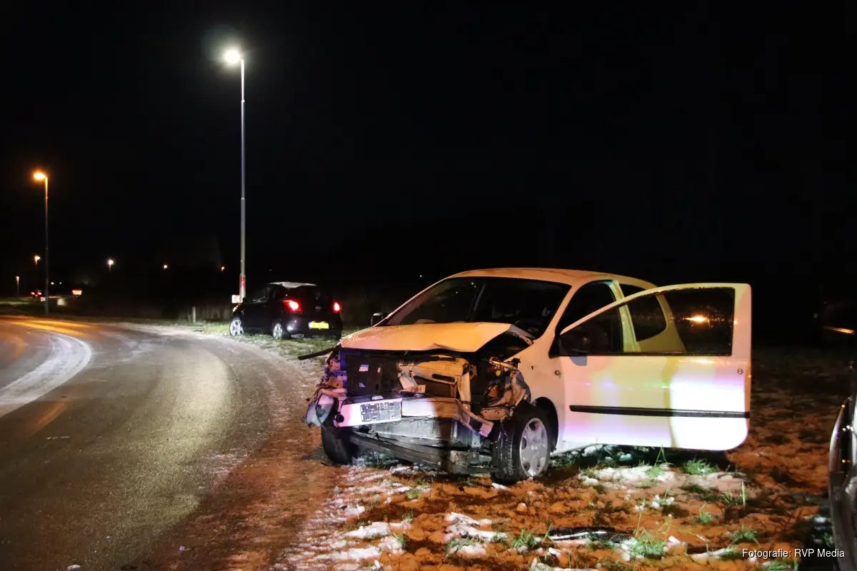 Een van de bestuurders is ter plaatse gecontroleerd door het ambulancepersoneel en daarna overgebracht naar het ziekenhuis.Een bergingsbedrijf heeft de beide beschadigde voertuigen afgesleept.