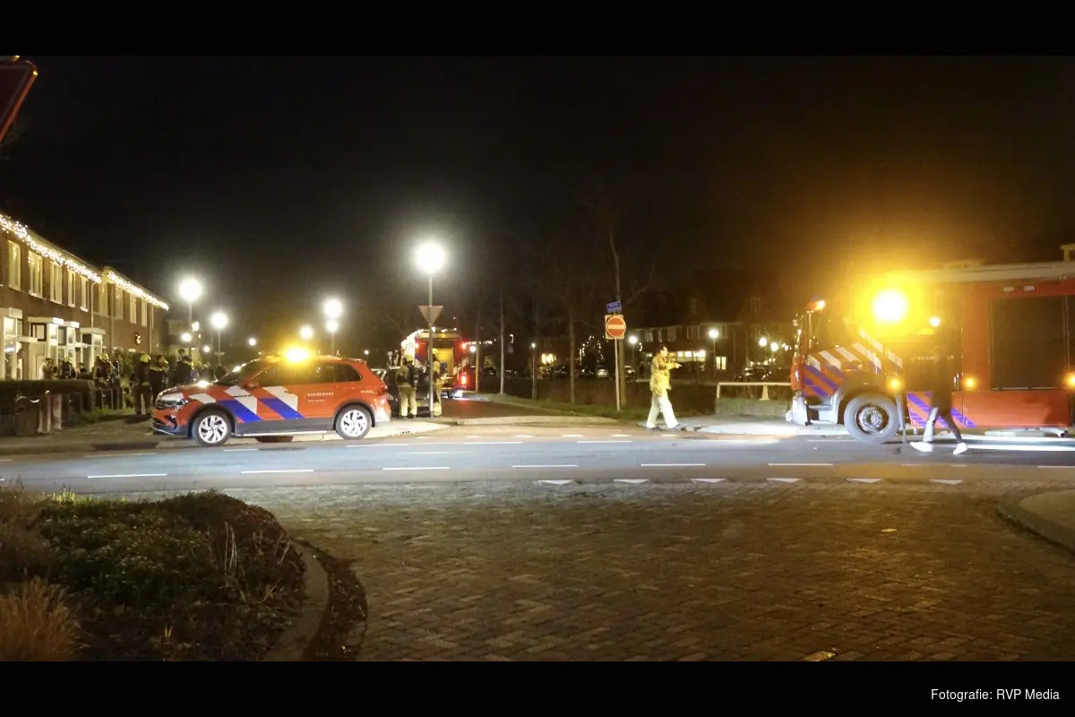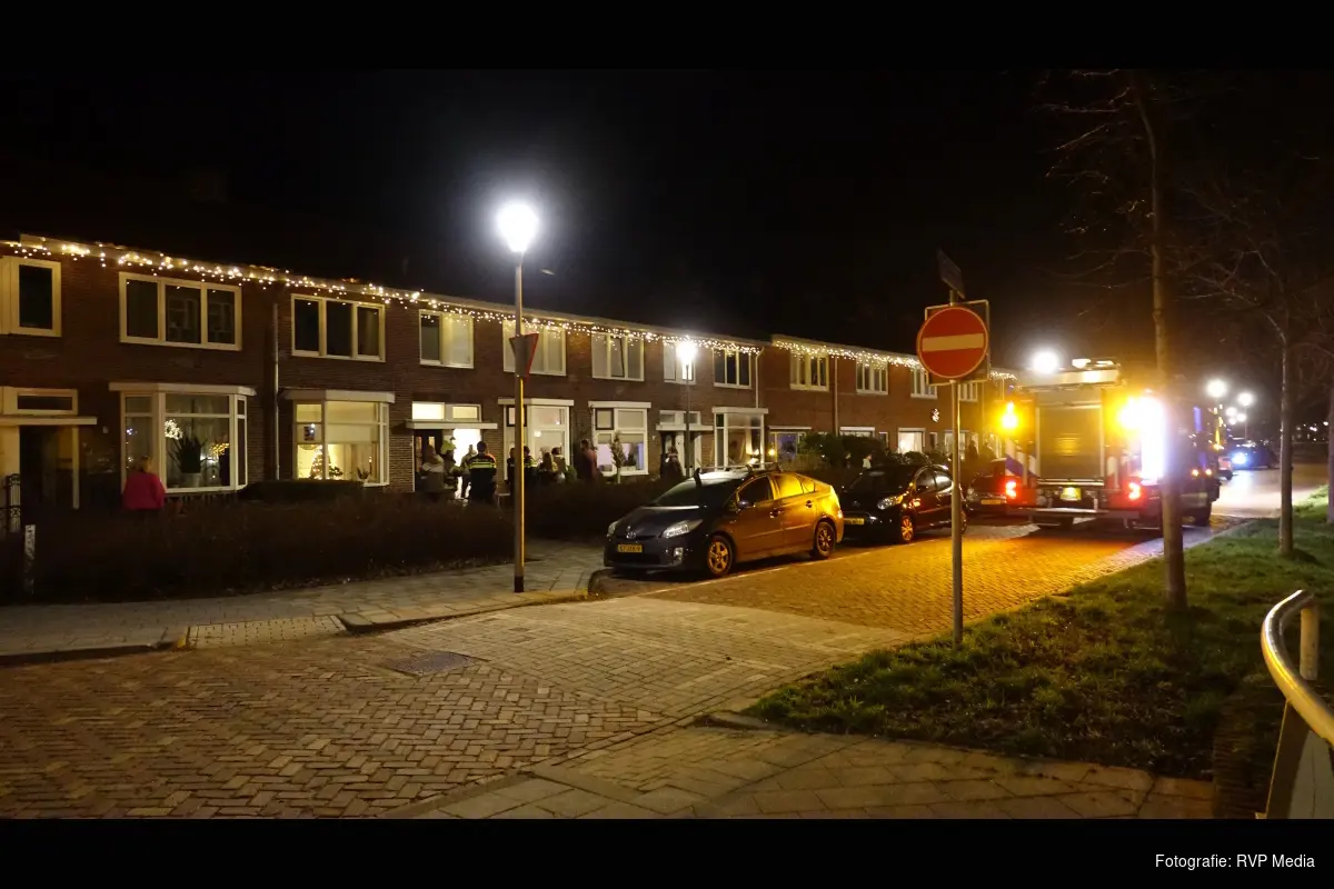 De rook lekt ergens via de muren en/of het meterkastkanaal naar de woning ernaast. Uit voorzorg en wegens de ligging van de woning heeft de brandweer opgeschaald naar 'middelbrand'. Er wordt onderzoek gedaan.